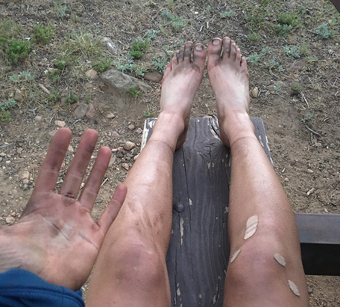 Un peu dur aujourd’hui, mais en fin de journée je vois enfin un signe sur le chemin : 100 écrit avec des cailloux ! Ça y est j’ai passé les 100 miles ! Soit plus de 160 km parcouru. Je pose ma tente au km 163. Un bonne nuit est nécessaire :)